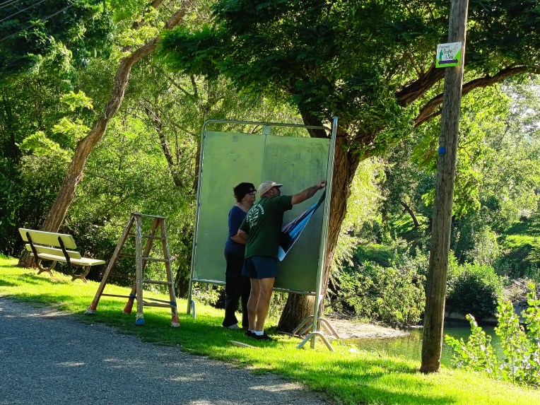 et tout à côté, le long de l’Arize, les « Grandes Linos », collées sur les panneaux d’affichage électoral !